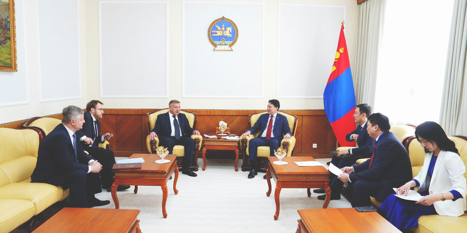Аж үйлдвэр, эрдэс баялгийн сайд Г.Дамдинням ОХУ-ын Элчин сайд А.Н.Евсиковийг хүлээн авч (2026.04.09) уулзлаа. Ойрх Дорнодын дайны нөхцөл байдлаас үүдэлтэй ОХУ-ын тэсэлгээний бодисын экспортын хоригоос шалтгаалан Монгол Улсын аж ахуйн нэгжүүдийн захиалсан тэсэлгээний бодисууд гацах, ОХУ-ын талаас захиалга авахгүй байх зэрэг хүндрэлтэй асуудлуудыг шийдэж, Монгол Улсыг тус хоригт оруулахгүй байхыг талууд тохиролцож баталгаажуулав.