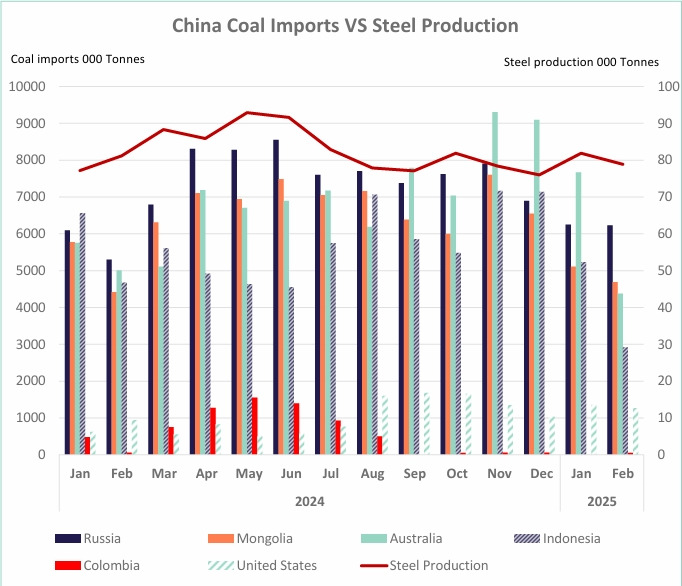 1-р хагаст Хятадын түүхий гангийн үйлдвэрлэл саарсан ч коксжих нүүрсний хэрэглээ харьцангуй тогтвортой байсан нь зарим үйлдвэрлэлийн сүлжээнд өндөр чанартай түүхий эдийн эрэлт хэрэгцээ байгааг харуулж байна.