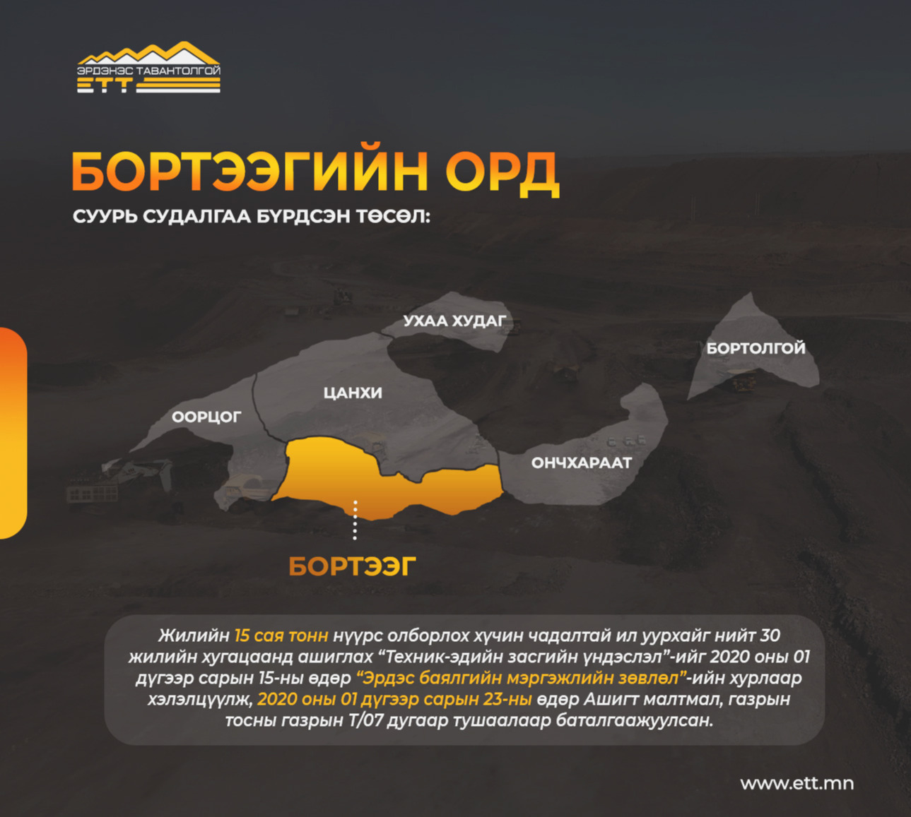 Тавантолгой бүлэг ордын ашиглагдаагүй Бортээг хэсгийг эдийн засгийн эргэлтэд оруулах, хөрөнгө оруулж, хамтран ажиллах сонирхолтой дотоод, гадаадын аж ахуйн нэгжүүдээс санал авах, нээлттэй сонгон шалгаруулалтыг зарлалаа.