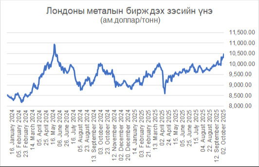 Зэсийн үнэ өнгөрсөн оны тавдугаар сараас хойших хугацаанд анх удаа 10500 ам.доллар/тонн давж, Лондоны металын бирж дээр 10480 ам.доллар/тонн-ын ханштайгаар (гурван сарын гэрээт үнэ) хаагдсан байна. Ийнхүү он гарсаар зэсийн үнэ 19%-иар өсөөд буй нь АНУ-ын төв банкны бодлогын хүүгийн бууралт болон зах зээлд уг металын нийлүүлэлт буурах нөхцөл бүрдсэнтэй холбоотойг шинжээчид тайлбарлалаа.