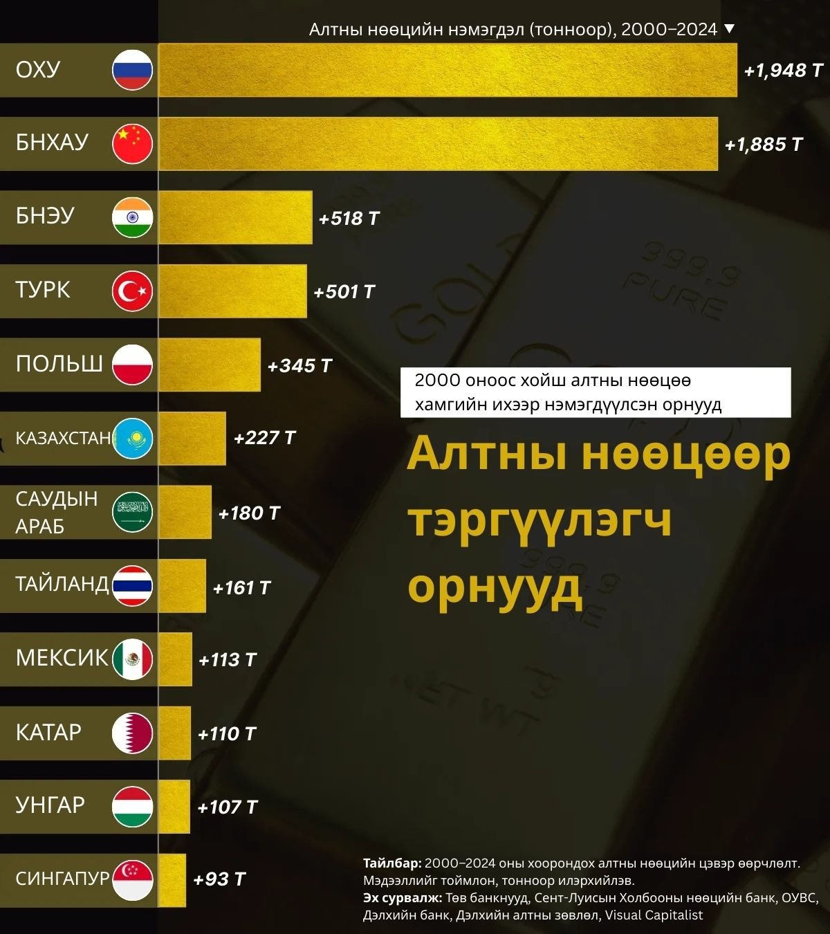 2000 оноос хойш алтны нөөцөө хамгийн ихээр нэмэгдүүлсэн орнууд